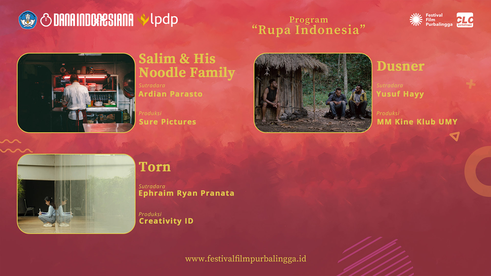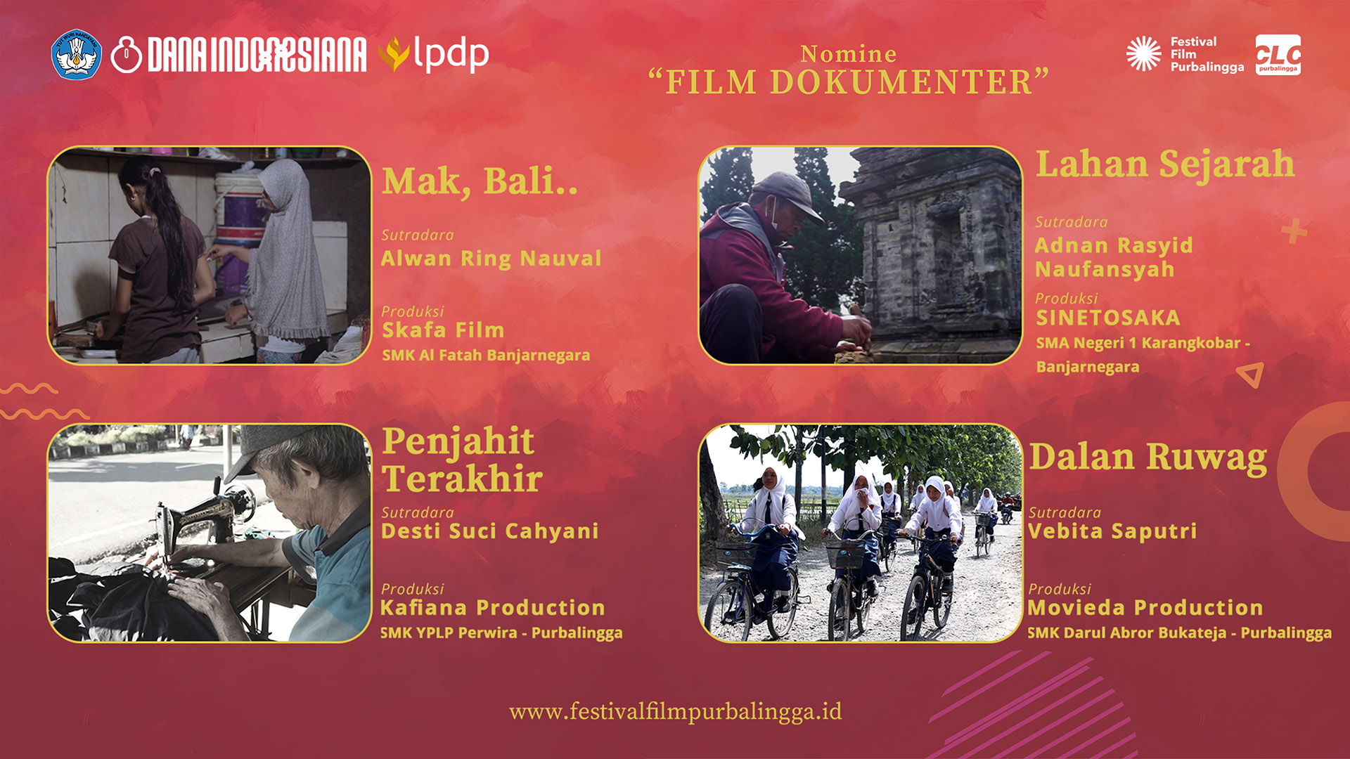 ”Hal yang menggembirakan pada FFP tahun ini, untuk Program Kompetisi, pelajar dari lima kabupaten Banyumas Raya mengirimkan karya mereka. Sementara antusias Program Non-Kompetisi tetap membara,” ungkap Iskandar.