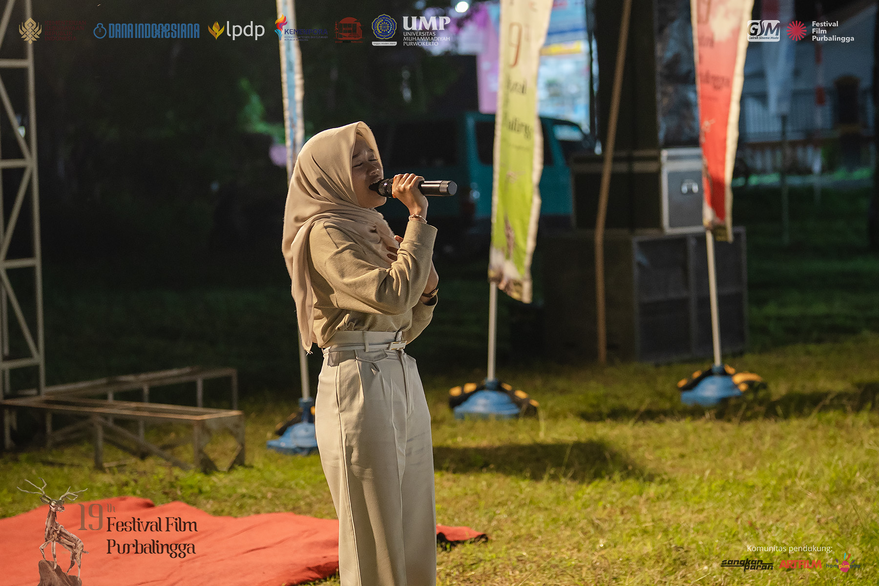 Sore hari, langit sempat mendung dan gerimis turun. Menjelang waktu Maghrib, gerimis reda. Panitia kegiatan yang digawangi Karang Taruna Gema Seraya Desa Serayu Larangan, karang taruna yang belum lama terbentuk, diawal acara menghadirkan akustik dari Fadcoustic, solo vocal dari Afra AFK, dan persembahan seni tari dari sanggar Sakyanara.
