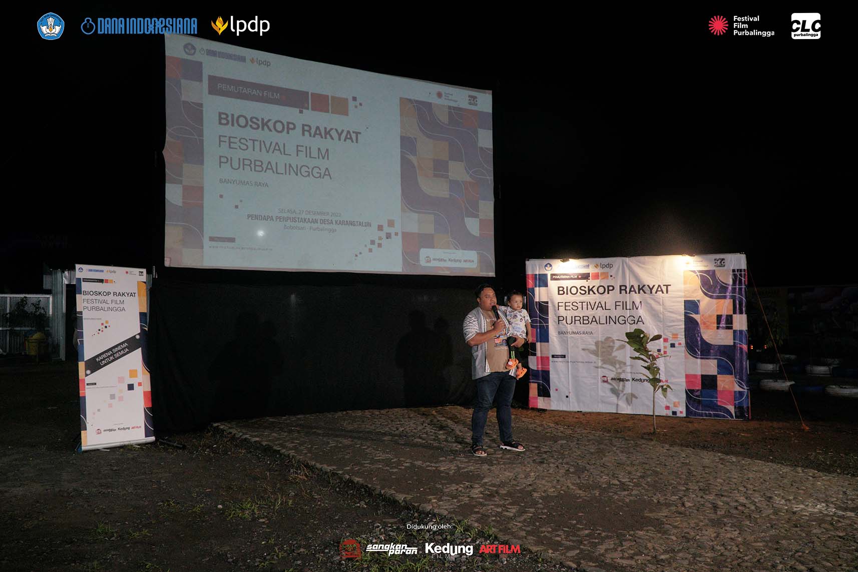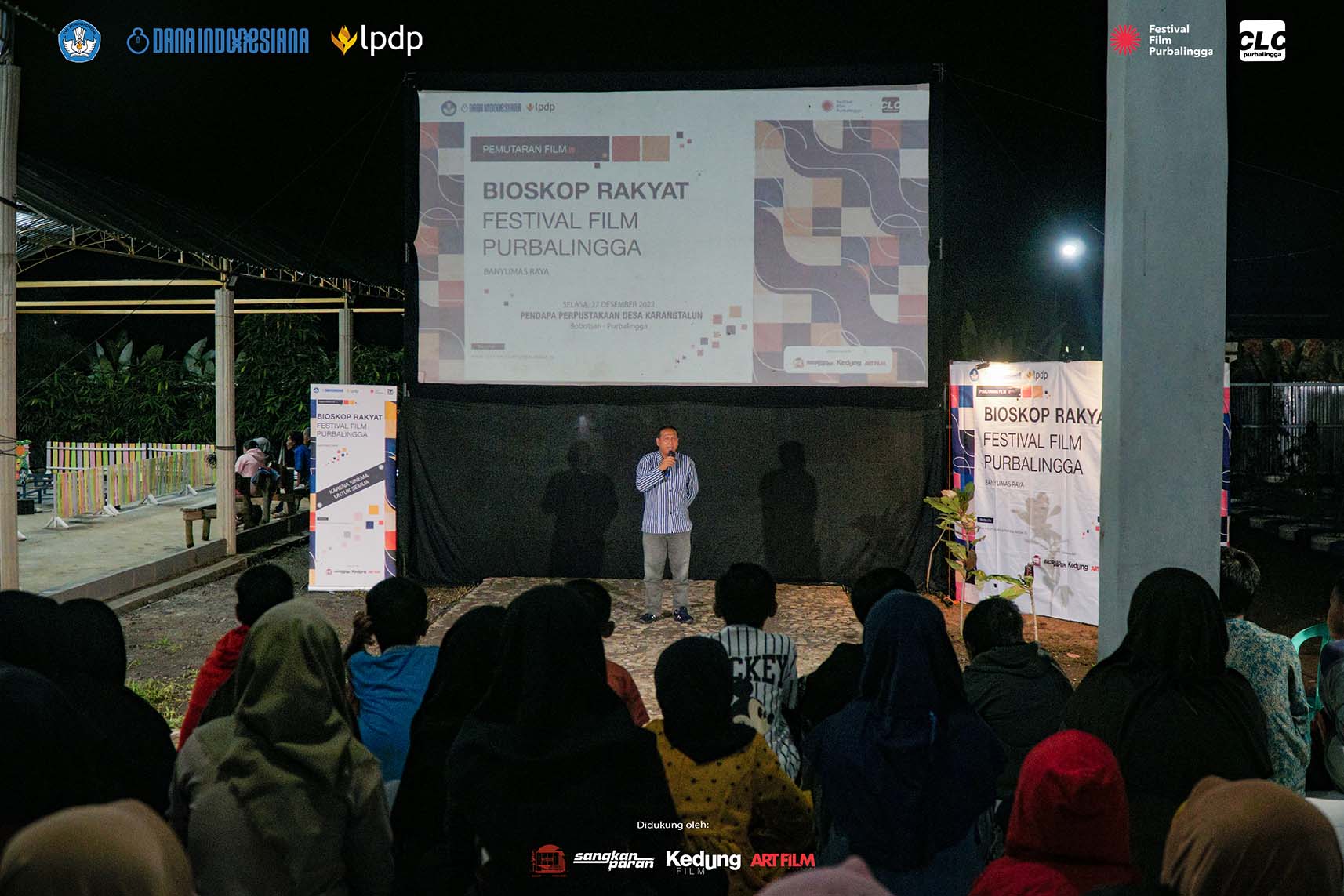 Sore itu, program Bioskop Rakyat (Biora) Festival Film Purbalingga (FFP) menancapkan layar di pelataran Pendapa Perpustakaan Desa Karangtalun, Kecamatan Bobotsari, Kabupaten Purbalingga, Selasa, 27 Desember 2022.